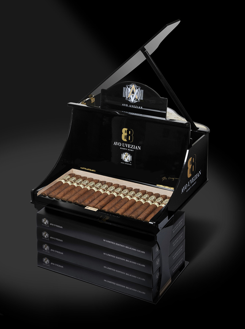 有 8,888 个盒子,其中 888 个是 Uvezian 签名的,包括寄给我们的那个。还有 1,888 个限量版烟灰缸和 488 个微型三角钢琴陈列柜供零售。