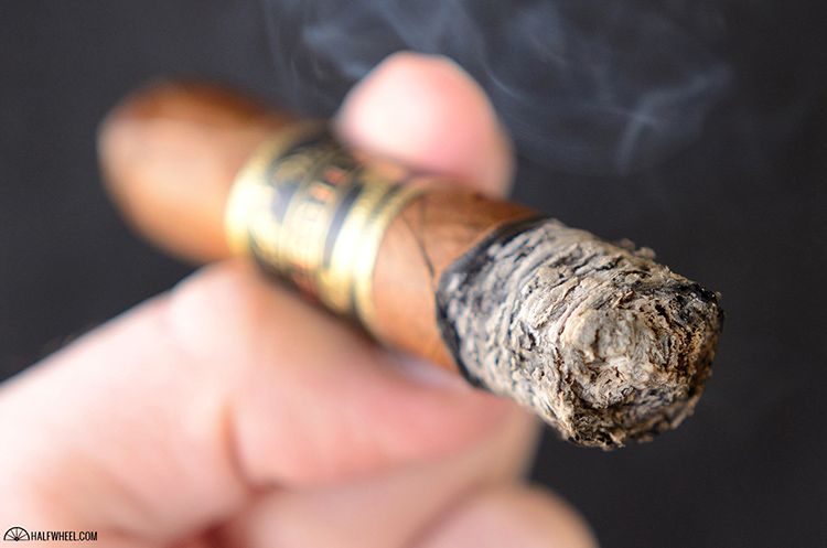 进入第二个三分之一时,胡椒粉的味道增加了,而奶油味则稍微消退了。轻微的坚果味也进入背景,加入可可。烧伤明显均匀,但仍不完美。胡椒继续增长,虽然可可已经开始褪色,但坚果味继续强烈。