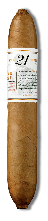 廓尔喀族地窖珍藏21年海妖 89 点 多米尼加共和国 60 环规 MILD-MEDIUM 品尝特征 的金色包装和盘辫子帽,这种脂肪figurado显示了一个柠檬,兴致很高的性格与暗示的水果和坚果,但终点稍薄的。